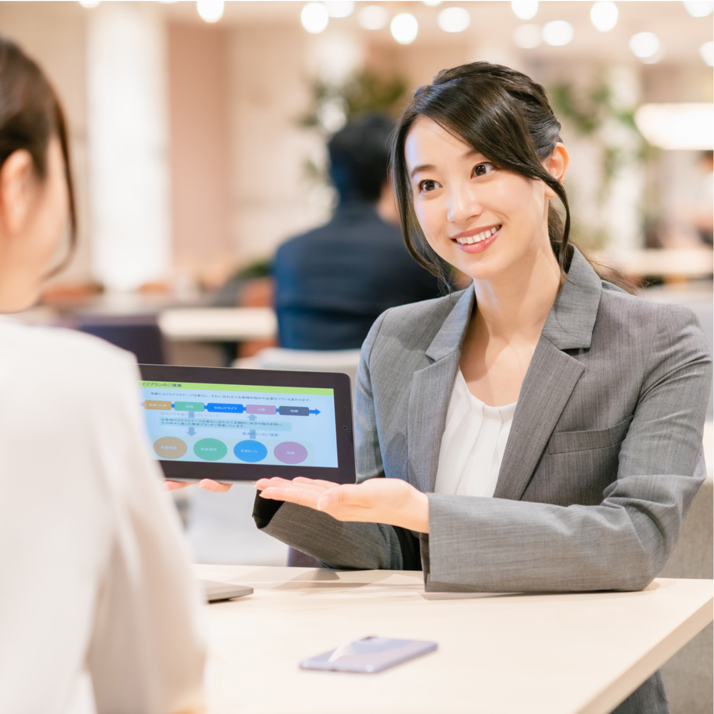 大きなお金を短期間で準備するのはとても大変ですが、小さなお金でも継続的に長い期間をかけて積み立てると必ず大きなお金が準備できます。大切なのは目標額の設定と期間を定めること、そしてできることから始めることです。預金・債券・不動産・保険・投資信託・株式などさまざまな金融商品がありますが、それぞれの特性を生かしてお客さまの想いにピッタリと合った、最適な形でバランス良くポートフォリオを形成するお手伝いをさせていただきます。